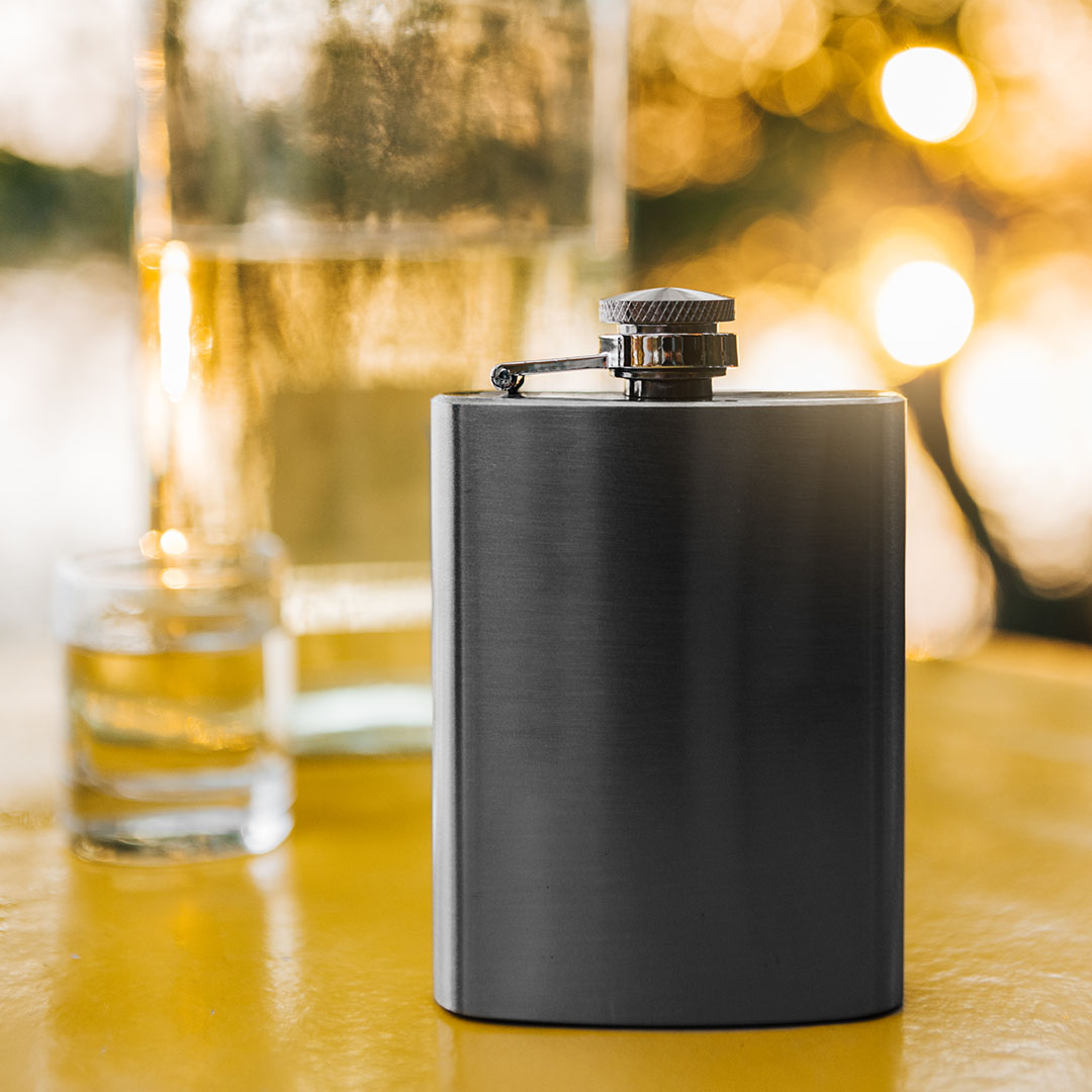 | The BRANDY 8 flask, the largest capacity model in our collection, is an excellent choice for those who need more volume without compromising portability. With a 230 ml capacity, it offers an ideal balance between size and practicality. Made of stainless steel 304 with single wall construction, it ensures durability and long-lasting use. Its large, flat surface makes it especially suitable for laser engraving, while the availability in two standard colours allows easy alignment with various brand identities. It comes in a gift box.