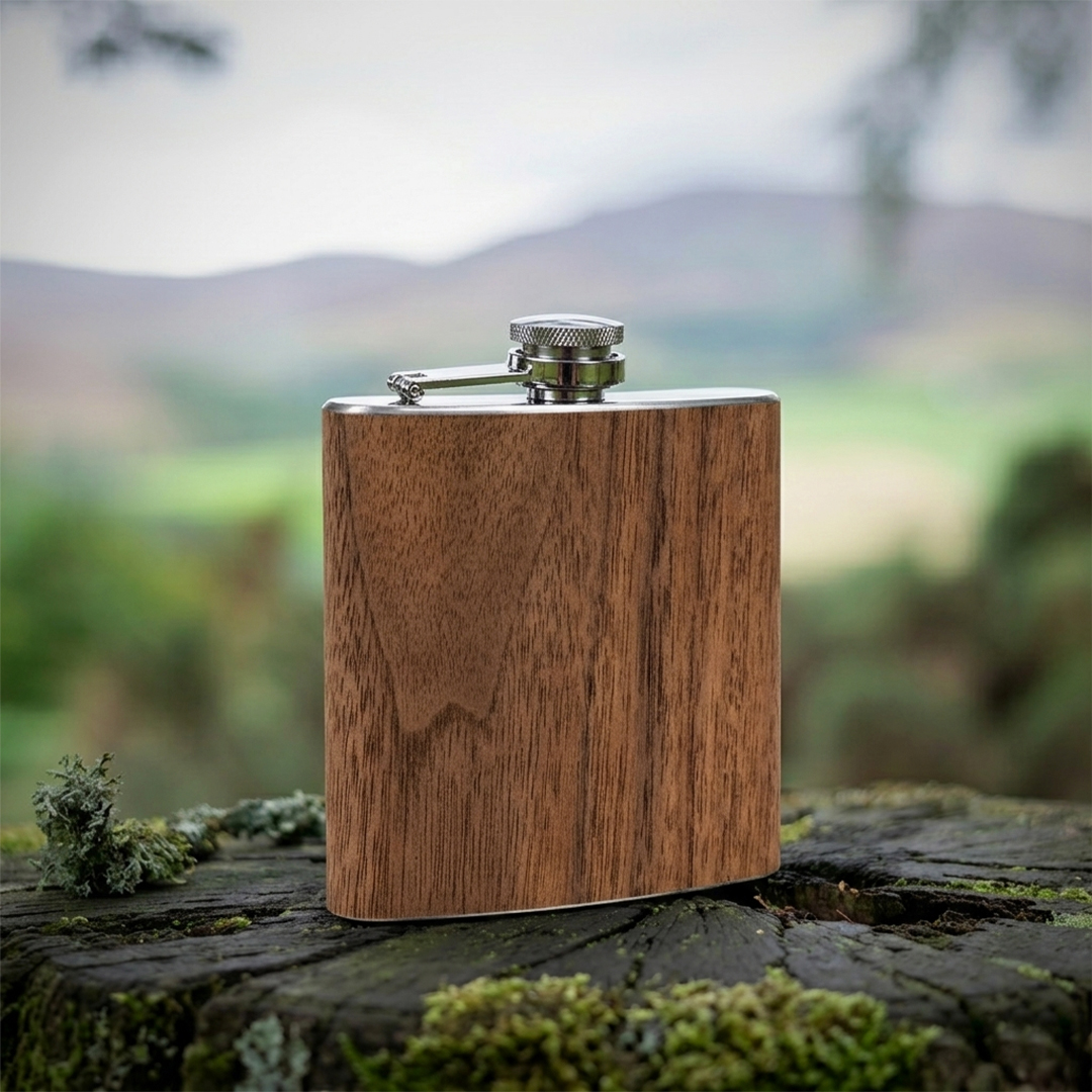 Description The PINTER 6 flask with a standard 170 ml capacity combines natural aesthetics with functionality. It is made of stainless steel 304 with a single wall construction, featuring an outer layer of natural wood that gives it a unique and premium look. This combination of materials makes it especially attractive for gifting and branding, as each flask has a slightly different wood texture. It is suitable for laser engraving, further enhancing its natural appeal. The product comes in a gift box, ready for presentation. Key features: Material: stainless steel 304 with natural wood outer layer • Construction: single wall • Capacity: 170 ml • Gift box • Not suitable for dishwasher • Not suitable for microwave use