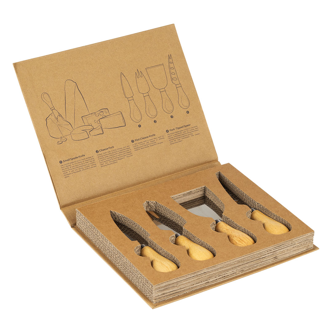 | Opis | Set FORMAGGIO za sire je idealno promocijsko darilo za vse ljubitelje sira in gastronomije. Set vključuje leseno servirno desko in štiri specializirane nože za različne vrste trdih in mehkih sirov, ki zagotavljajo pravilno, praktično in elegantno serviranje. Deska je izdelana iz naravnega lesa in je primerna za lasersko graviranje. Noži so zasnovani tako, da ustrezajo različnim teksturam sira, kar naredi set funkcionalen in vizualno skladen. Set je dostavljen v darilni škatli z navodili na notranji strani in diskretnim tiskom na zunanji strani. Škatlo je mogoče dodatno brendirati, kar naredi set FORMAGGIO odlično izbiro za korporativna darila, poslovne partnerje, vinarje in premium promocijske kampanje. Ključne značilnosti: Material: les (deska), nerjaveče jeklo (noži) • Vsebina seta: lesena deska in 4 noži za trde in mehke sire • Namen: rezanje in serviranje sira • Darilna škatla |